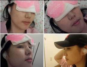 이건 성형 당일이예요. 지금 생각해도 신기했던건 진짜 안아팠다는거!! 회복실에 누워서달라진 제코
